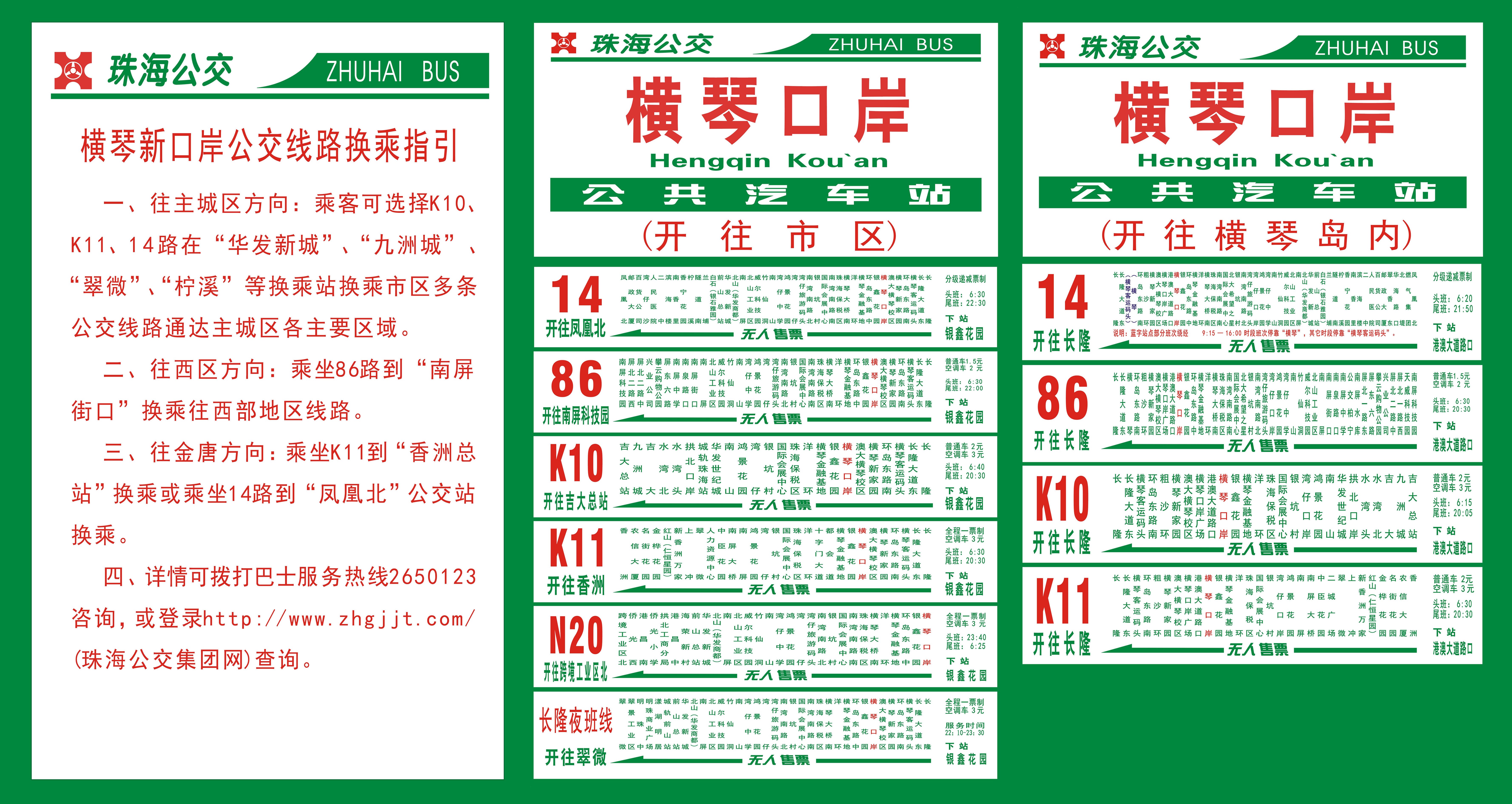 2015年春節(jié)是橫琴口岸實行24小時通關(guān)后迎來的首個新春佳節(jié),為了最大程度地緩解春節(jié)期間橫琴口岸周邊的交通壓力,妥善解決好出入境客流高峰的現(xiàn)實需要,保障出入境旅客的出行需求,市、區(qū)相關(guān)部門采取多項措施對橫琴口岸的交通組織進行了優(yōu)化。其中,開設(shè)了多條公交線路往返于橫琴口岸和市區(qū),并增設(shè)夜班線(詳見附圖一);新臨建和改擴建24小時收費停車場8個,可提供近2000個停車位(詳見附圖二)。同時,提醒出入境旅客文明出行,優(yōu)先選乘公共交通工具,自覺遵守交通規(guī)則。切勿聽信不明人士的指引,以免上當(dāng)受騙。
